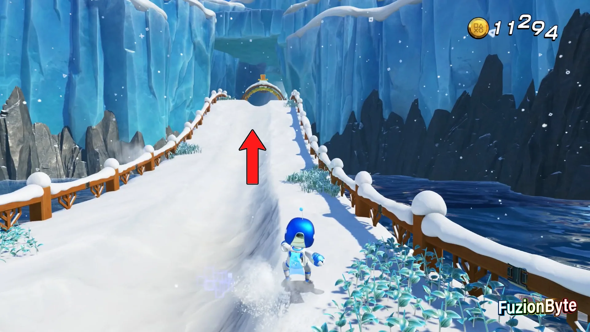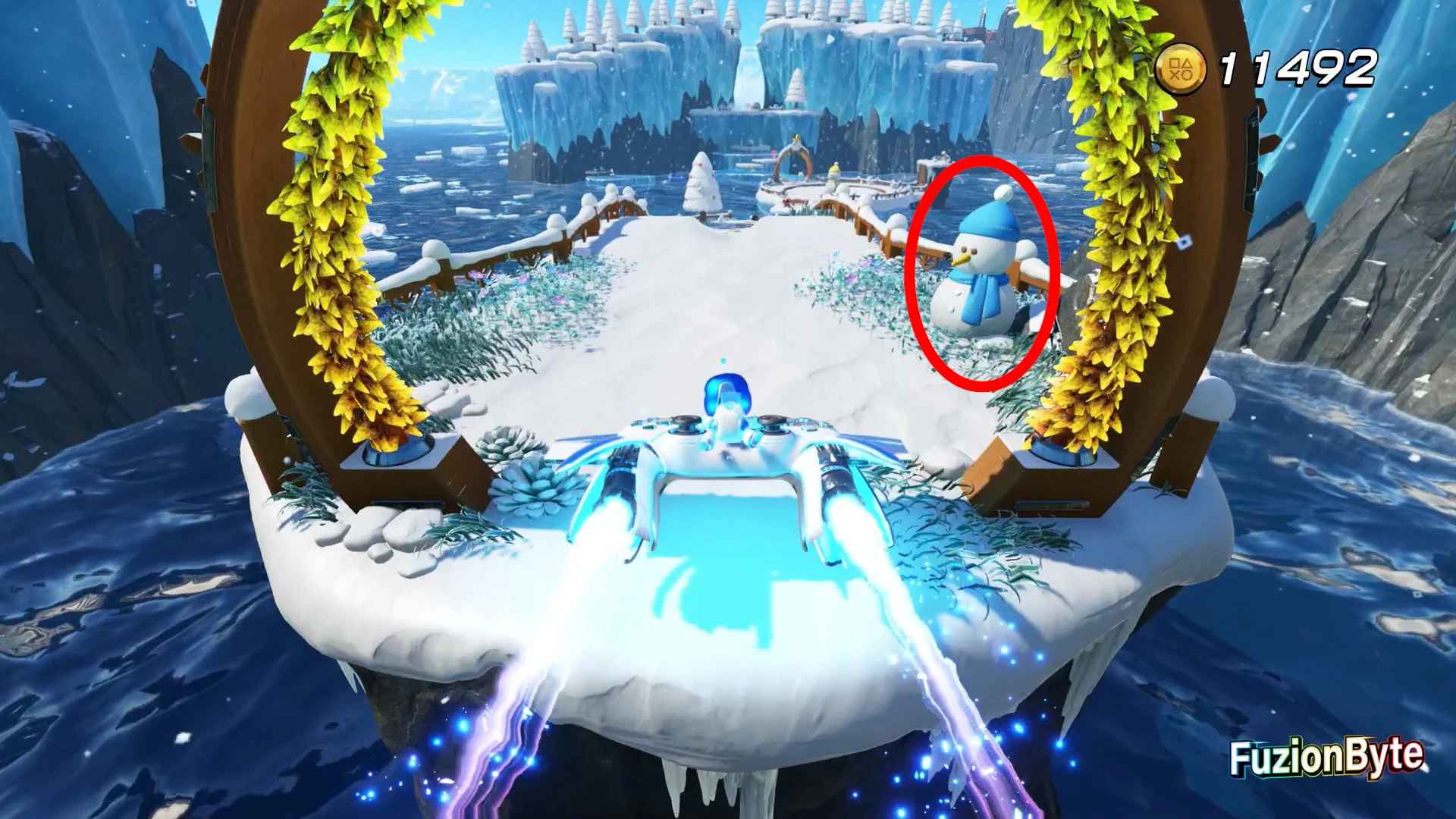 As soon as you land in the level, run back up the ramp you just rolled down and hit the snowman on your left.